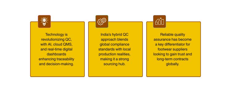 The best suppliers; mainly those catering to footwear suppliers in USA, build ‘hybrid’ quality control systems by leveraging expected compliance standards from the West and manufacturing realities in India. This hybrid system consists of bilingual SOPs, regular workshops on skill upgradation, and digital QC checklists for Indian factory floors.