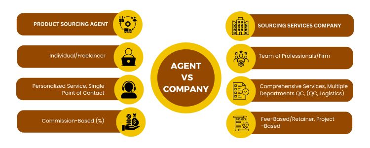 Agents usually manage single transactions, whereas sourcing companies create a working relationship with suppliers by employing a complete supplier relationship management process with strategic oversight.