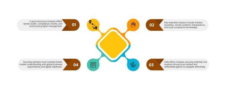 - When investigating sourcing agents in India, it’s important to ask the right questions beyond credentials. You can consider the following criteria as a framework for your evaluation.