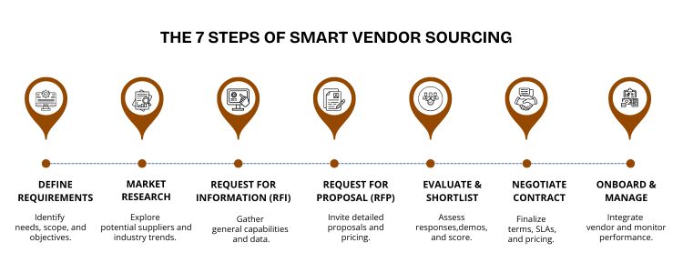 Smart vendor sourcing supports cost-effective procurement and consists of finding, evaluating, and establishing partnerships with suppliers that provide not only competitive pricing but also strategic advantages like innovation, agility, and reliability.