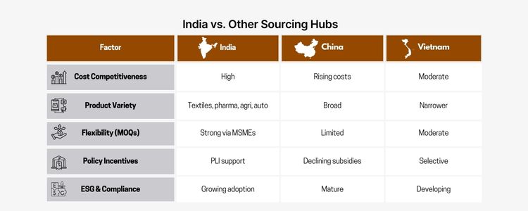 India is a potential sourcing destination, as shown by its economic path. India has been the fastest-growing large economy in the globe, thus providing an exciting operating environment for businesses. The country is highly involved in economic reforms, development of its infrastructure and a growing middle class, which make it even more attractive as a source partner.